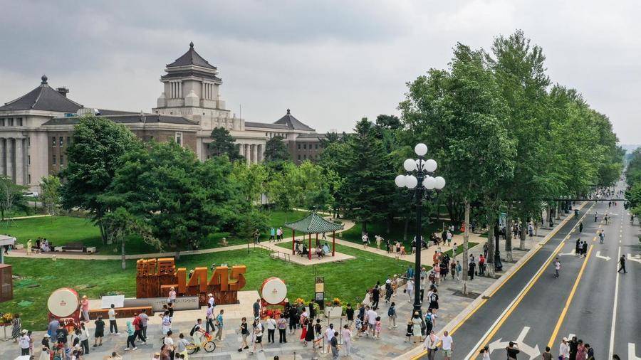 7月5日,游客游览新民大街(无人机拍摄)。新华社记者 张楠 摄记者注意到,位于长春新民大街中段一处红砖绿瓦的中式建筑格外醒目。那是由长春日报社旧址改建而成的长春历史文化博物馆。据伪满皇宫博物院学术研究部主任王昊介绍,博物馆将常设五大展览,以“一条街、一座城、一群人”为主线,构建立体化的城市记忆图谱。